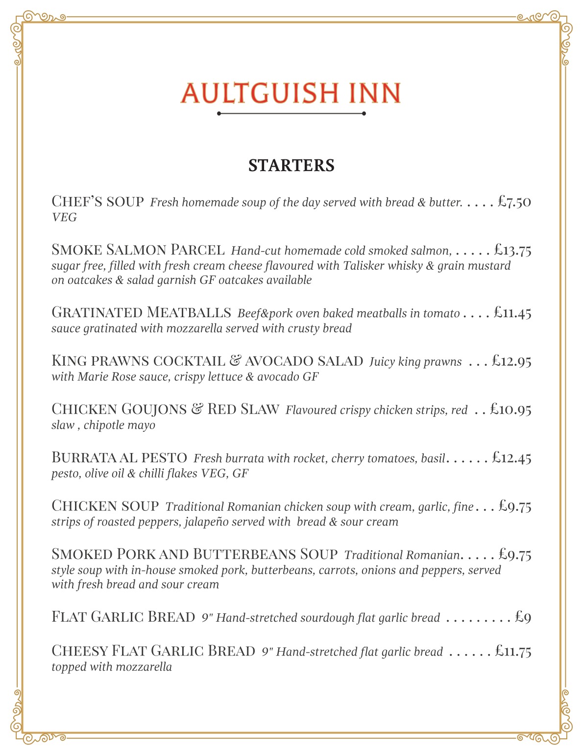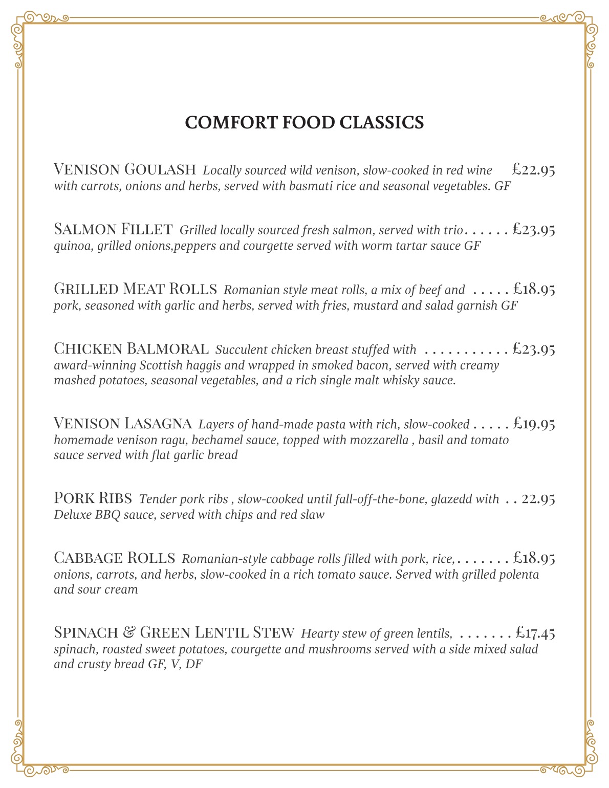 Full cooked Scottish breakfast including local black pudding. Choice of cereals, fruits, yogurts with ham and cheese, tea and coffee.